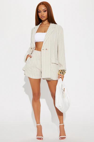 Work Mode Pinstripe Pant Set - Taupe/combo