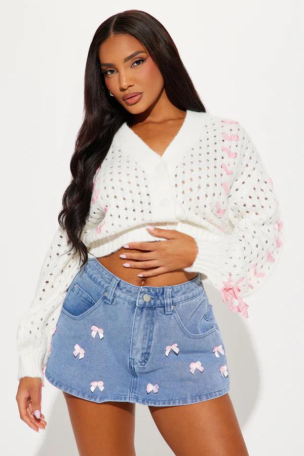 Bow On Top Cherry Cardigan - Pink
