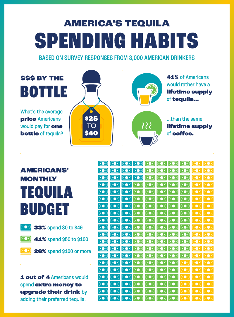 However, some of us are big spenders—26% of Americans spend a Benjamin or more on tequila every month!